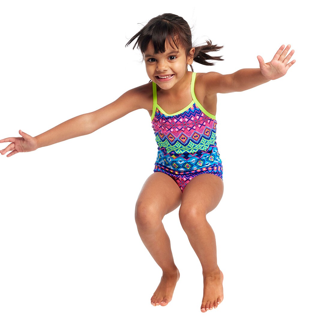 Designul costumului Funkita Toddler Girl's Printed One Piece este plin de culoare și modele adorabile, care cu siguranță vor fi pe placul celor mici. Acest costum vesel atrage atenția și transformă fiecare sesiune de înot într-o aventură plină de distracție. Culorile vibrante și imprimeurile inedite fac din acest costum o alegere preferată de părinți și copii deopotrivă.