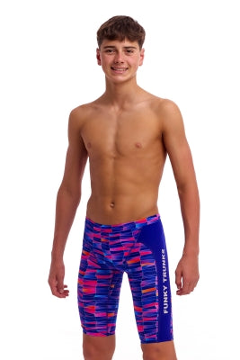 Funky Trunks Training Jammer este conceput pentru înotătorii care au nevoie de echilibru între performanță, confort și un design plin de energie. Perfect pentru antrenamente frecvente și sesiuni de intensitate ridicată, acest jammer îmbină croiala hidrodinamică cu imprimeurile vibrante specifice Funky Trunks.