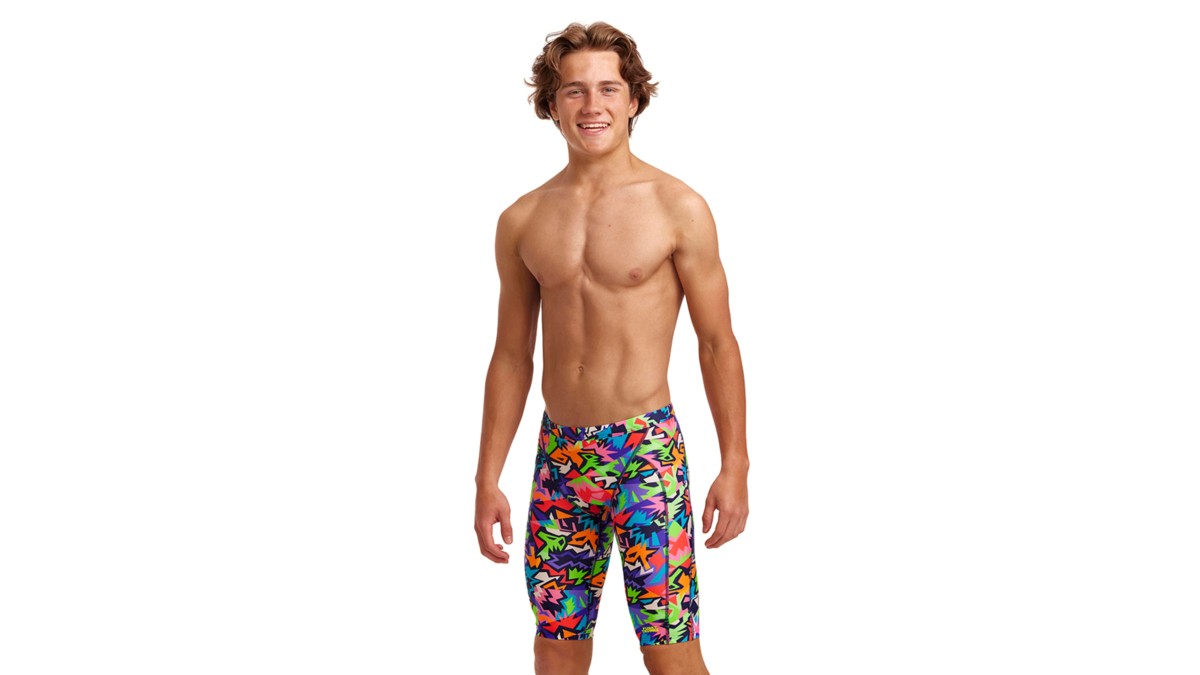 Jammerul Funky Trunks este alegerea ideală pentru tinerii înotători care își doresc un jammer de înot rezistent la clor cu model exotic, performant și confortabil. Cu un design aerodinamic și o croială modernă, acest jammer oferă suport excelent în timpul antrenamentelor și competițiilor. Ideal pentru înotul competitiv, Funky Trunks Jammer asigură libertate de mișcare și un look stylish pe marginea piscinei.