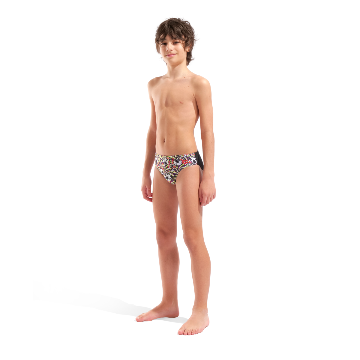 Modelul Fun Skulls aduce un imprimeu energic și jucăuș, potrivit copiilor care doresc un slip colorat și original. Culorile vii și grafica stilizată îl fac să se remarce în bazin sau la plajă.